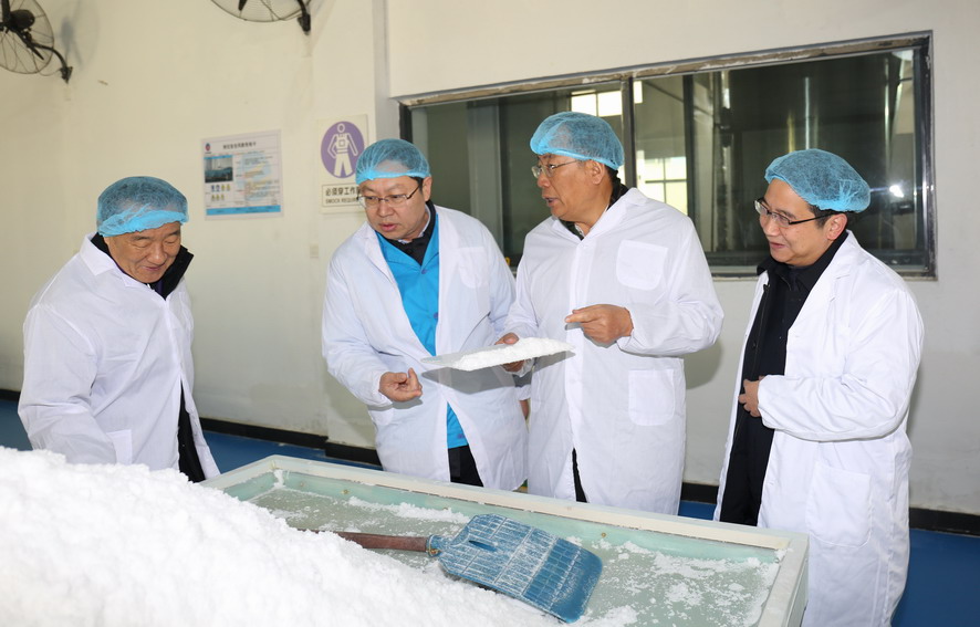 12月29日,中國鹽業(yè)協(xié)會理事長茆慶國一行到集團(tuán)公司調(diào)研鹽業(yè)生產(chǎn)情況。集團(tuán)公司常務(wù)副總經(jīng)理楊國新陪同。