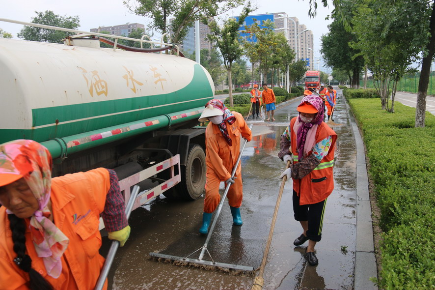 819日在火車站廣場及周邊路段,40多名綠化、保潔工人及灑水車、清掃車等全力保障火車站重點地段的環境衛生,為過往旅客提供一個干凈整潔舒心的出行環境。據現場負責人龔本國介紹,隨著創衛工作力度的進一步加大,開發區對我們火車站廣場及周邊路段的環境衛生提出了更高的要求,我們對會泉路商戶門前的綠化進行了補植,種植紅葉石楠等苗木600多平方,每天專門安排一輛灑水車對火車站廣場及周邊路段進行巡回清洗清掃,確保路面干凈無塵土,對廣場站臺、護欄、果皮箱、路燈桿、花壇進行清理擦洗,對下水道進行清掏,蓋板更換維修。為確保創衛工作任務高標準高質量完成,連日來,綠化養護、環衛保潔工人天天早上6點上班,到晚上10點下班,中午吃飯休息只有一個小時,每天工作10多個小時,為創衛工作做了很多實實在在的事情,他們真的很不易,很辛苦,只因有了他們的辛勤勞動、無私奉獻,城市環境衛生才會越來越好。