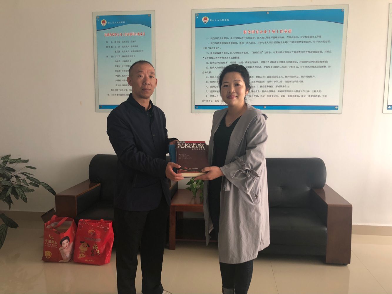 10月17日,灌云縣檢察院監察室主任范玉兵到灌西投資公司紀委調研工作,進一步加強檢察院與企業溝通和了解,促進檢企共建活動深入開展。