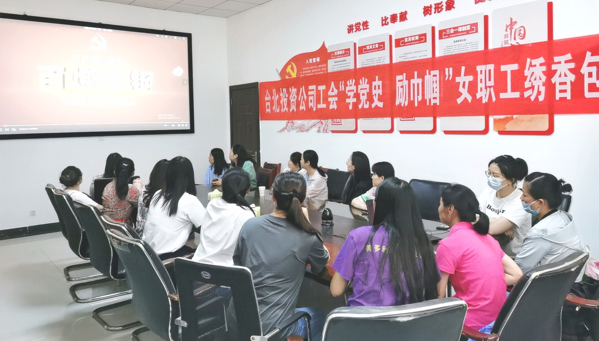比賽前,女職工們集中觀看了《百煉成鋼:中國共產黨的100周年》和《大家說端午》紀錄片,增強了愛國主義情懷,弘揚了優秀傳統文化,堅定了心向黨、感黨恩、跟黨走的理想信念。