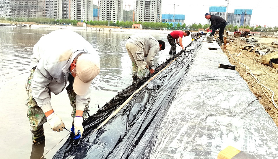 本次技能比武共有24名一線職工報名參加,分為4組,每組6人,以小組為單位,同規模、同長度、同條件格堰,在規定時間內完成塑布安裝。