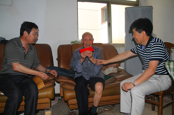 722下午,公司領導盧明生、王志軍前往全國勞模鄭友根家中看望慰問,詢問百歲老人的生活情況和存在的實際困難,為他送去了水果和困難救助金,感謝老人為鹽業系統作出的貢獻。(徐靜)