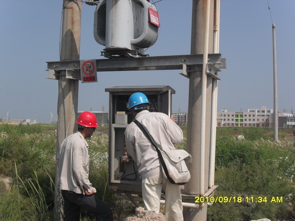 918,灌西供電所領導分別帶隊,對轄區內用戶進行拉網式檢查,發現隱患立即處理,確保兩節期間安全供電。(圖為檢查變壓器及配電箱)(王志勇)