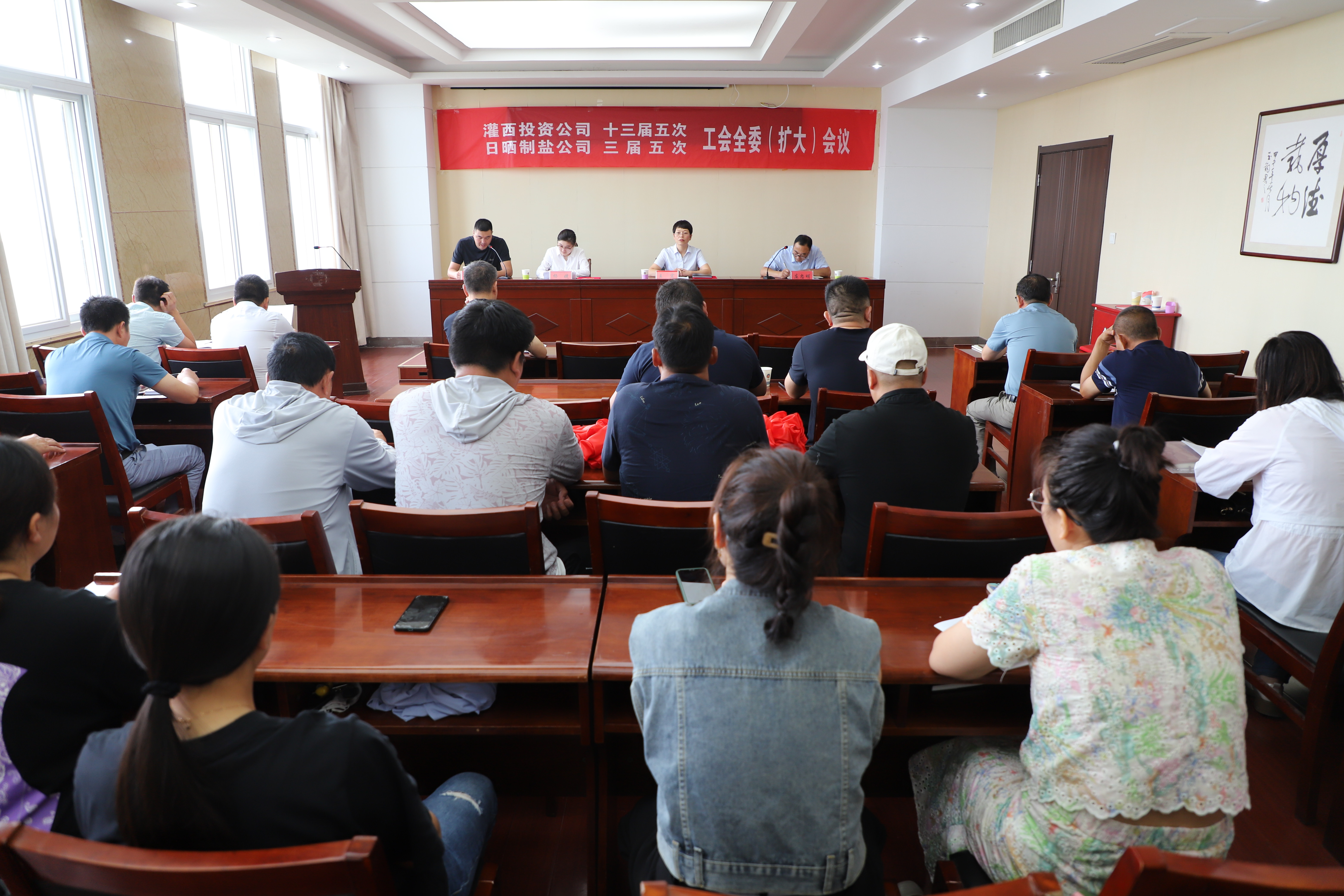 8月17日,灌西投資公司召開十三屆五次、日曬制鹽公司三屆五次工會全委(擴大)會議,公司黨委副書記、工會主席王宏出席會議,灌西投資公司工會十三屆、日曬制鹽公司工會三屆委員會全體委員,各單位工會主席、女工委員參加會議。