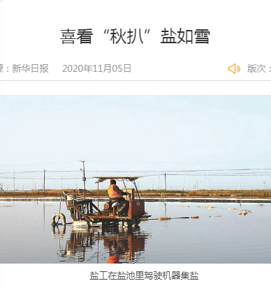 2012年,剛到鹽場工作時,程龍跟著師傅安樹林學習破碴、活碴、扒鹽等。長年累月的風吹日曬,程龍早已沒有8年前的白凈膚色,取而代之的是黝黑的皮膚和成熟的工作經驗,他現在已經是日曬制鹽埒南分公司經理。“剛做到管理崗位時,正趕上秋扒,我帶班一個扒鹽機組。白天黑夜都要站在鹽池格子里,檢查是否有爛泥進入機器。如果爛泥通過輸鹵管道運送到鹽廩上,會形成黑鹽。”那時候,程龍每晚至少要待在鹽池里3個小時,持續一個多月。“每當看到鹽廩上堆積的潔白如雪的鹽,我就會覺得一切都值得。”前幾年,程龍又在市區買了一套房子。現在,他家已經有兩套房子、一輛車。程龍家的變化只是鹽工生活的一個縮影。