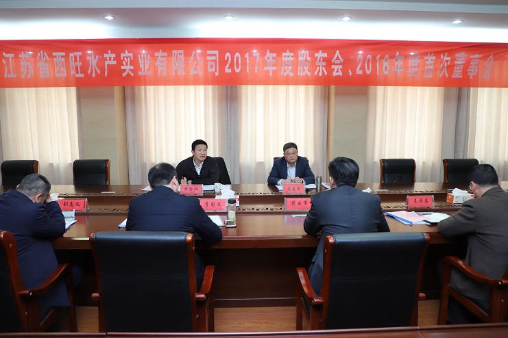3月22日,江蘇省西旺水產實業公司2017年股東會、2018年第一次董事會在投資公司三樓會議室召開,省沿海開發集團黨委委員、副總經理周金陽,連云港市工業投資集團黨委委員、總會計師匡友本等股東代表、董事代表出席了會議。