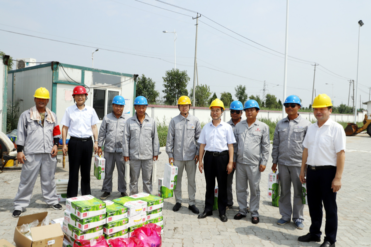 在灌西宵洋公司五灌河碼頭作業(yè)現(xiàn)場,胡建明代表集團公司向在一線的碼頭工人們表示深切的感謝和慰問,感謝他們在烈日下為集團所付出的辛勞,并叮囑碼頭工人避開高溫時段,科學合理安排好作業(yè)時間,既要保證生產(chǎn)作業(yè)質(zhì)量和進度,又要注意高溫生產(chǎn)作業(yè)安全。