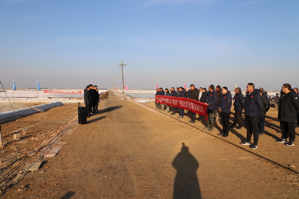 在新河制鹽分公司5班灘頭,總經(jīng)理吳衛(wèi)平作動(dòng)員講話,裁判長沈玉波宣誓,董事長孫政權(quán)宣布“‘薪火灌筑 匠星西傳’師徒結(jié)對(duì)擂臺(tái)賽”正式開始!