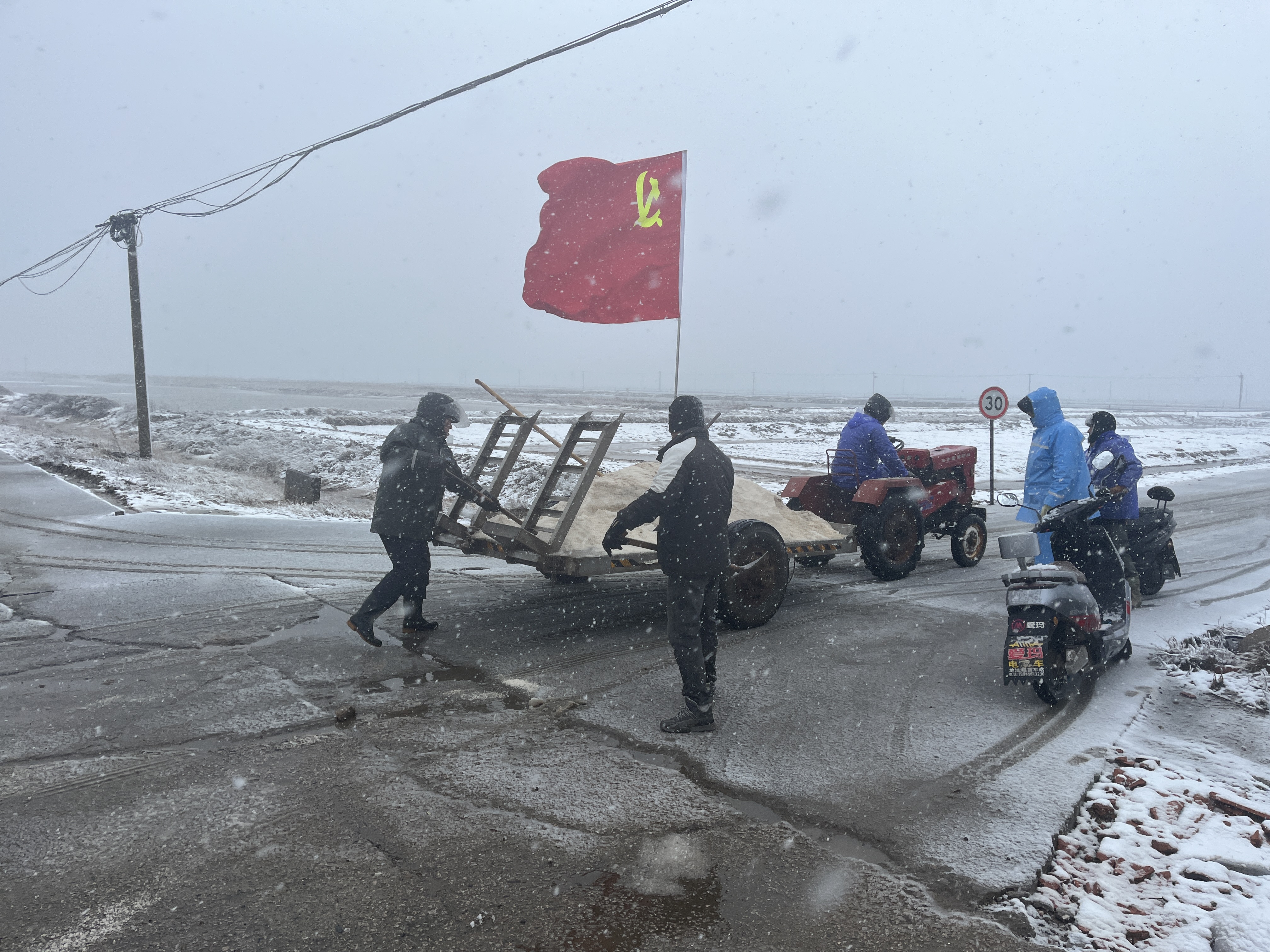 老黨員黃兆柱不惜班組產量,主動提供“融雪鹽”。祝星星、匡洪忠等不畏嚴寒、鉚足干勁,手拿鐵鍬撒鹽、鏟雪。同時,還積極組織大家清掃各自區(qū)域內積雪,共同守護職工出行安全。經過大家的努力,南北長約5公里的道路已全部撒上“融雪鹽”。下一步,新河支部黨員先鋒隊將密切關注天氣變化,全力保證職工上下班道路交通安全。