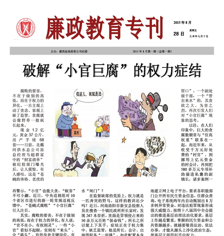 請廣大黨員干部自覺遵守各項黨紀條規和公司規章制度,紀委將不定期組織開展明察暗訪,狠剎公大吃大喝不正之風、遲到早退懶惰之風,并加大懲戒力度,對典型問題要點名道姓予以通報,發揮震懾警示、教育誡勉作用;對有令不行、有禁不止,特別是漠視規定、頂風違紀的行為,發現一起、查處一起,決不姑息,決不遷就,使紀律真正成為帶電高壓線。