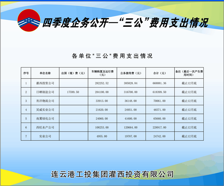 截至12月底,各單位三公費用支出情況如下: