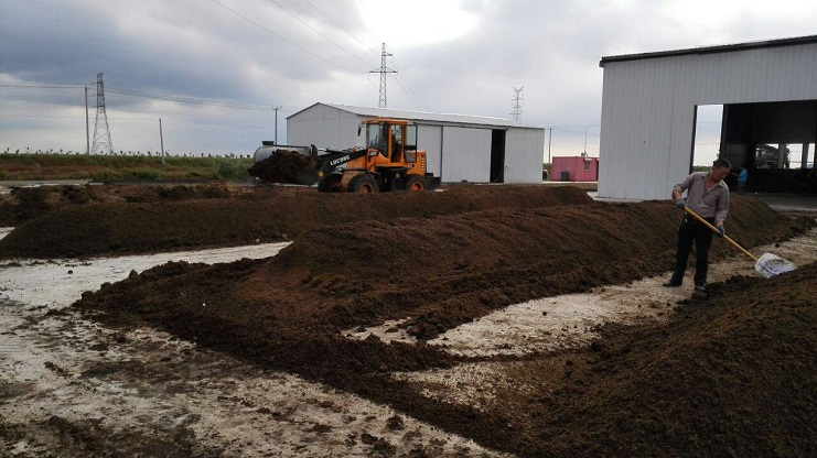 近期,綠淮肥業針對客戶的不同需求,生產適銷對路的有機肥產品,有效化解庫存積壓,擴大銷量。圖為工人正在翻拋、發酵有機肥。(綠淮時寬銀)