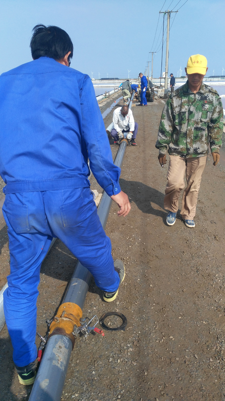為節(jié)省扒鹽管道拆、裝時間,提高扒鹽速度,減輕扒鹽人員負(fù)荷,6月11日上午機電服務(wù)公司新制快接管道在埒南制鹽公司11班進(jìn)行現(xiàn)場實踐。他們放棄休息日,制作人員全員參與,市勞模王緒華、一星級員工程洪連、黨員楊軍,他們個個不怕臟和累,經(jīng)過一個多小時操作,管道安裝結(jié)束,在幾次調(diào)試后,扒鹽機組運行正常。該快速接頭優(yōu)點是安裝、拆解快捷,節(jié)約成本,不足是皮墊易漏鹵。通過此次試運行,對不足之處,該公司將繼續(xù)研究,爭取早日投入鹽業(yè)生產(chǎn),創(chuàng)造效益。(機電服務(wù)公司)