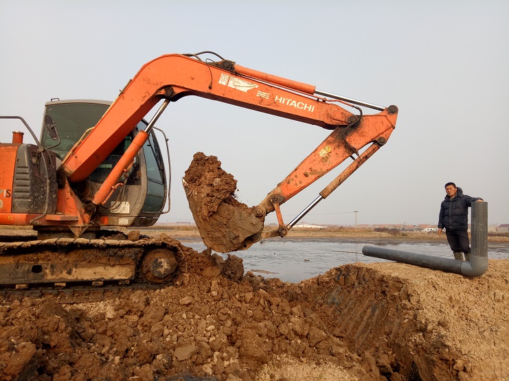為了加大灘場改造力度,盡早將海水順暢的引進灘地、鹵灘及時排淡,近日,實業公司制鹽分公司海鹽基地三班班組,忙著下進排水管道。三班班長金立柱更是早出晚歸,望改造的灘場早日投入生產。(圖為三班班長正準備下管道)。
