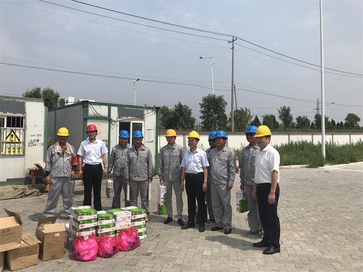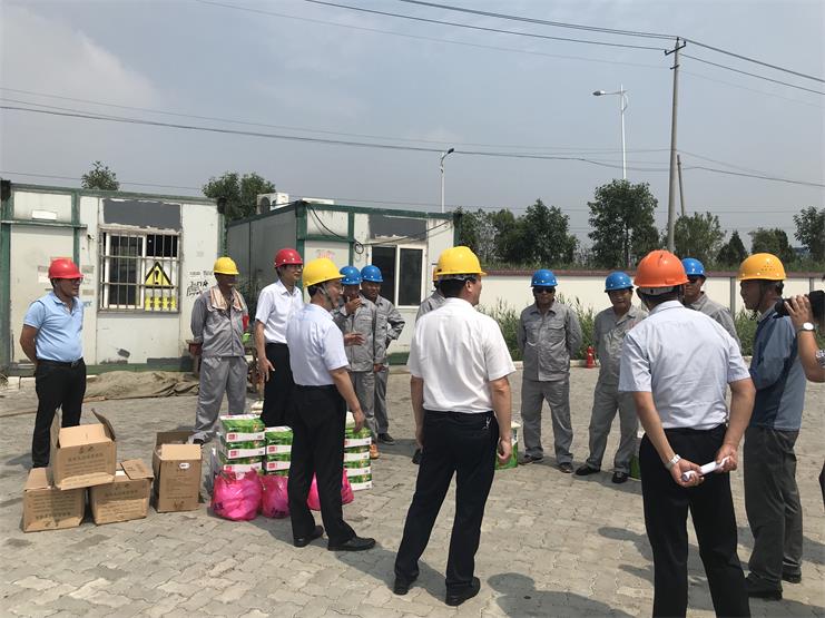 8月1日上午,工投集團總經(jīng)理胡建明、副總經(jīng)理張其海等一行人在灌西投資公司董事長李國文、黨委副書記王宏、分管領(lǐng)導(dǎo)劉殿龍的陪同下來到宵洋物流碼頭開展“夏日送清涼”慰問活動,為奮戰(zhàn)在一線的員工們送來牛奶、綠豆、白糖等防暑降溫物品。期間,胡建明總經(jīng)理等人同宵洋碼頭的一線員工們親切交談,詳細詢問他們的生產(chǎn)生活情況,同時強調(diào)要盡量避開高溫時段進行作業(yè)。隨后集團總經(jīng)理胡建明等一行人也聽取了工作人員講解現(xiàn)場施工安全和后勤保障的開展情況,并再次要求一定要做好夏季安全生產(chǎn)和防暑降溫工作。落實各項防暑降溫措施,強化安全責(zé)任制,為員工提供良好的安全生產(chǎn)環(huán)境。(宵洋物流 張寶同)