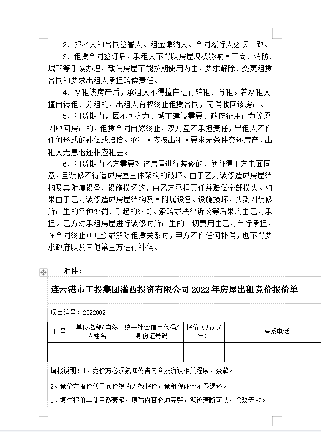 連云港市工投集團灌西投資有限公司房屋對外公開招租公告