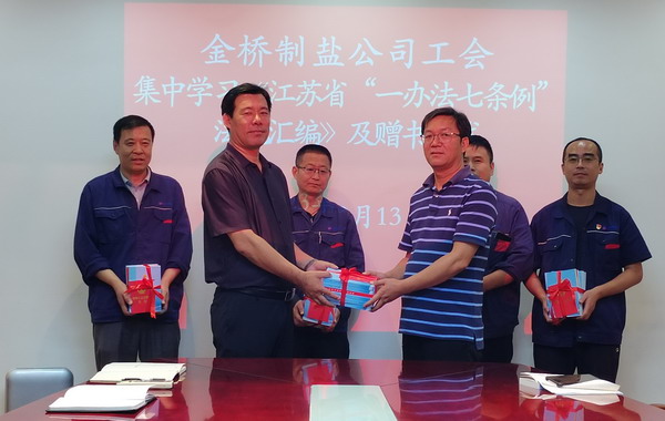 活動中,首先集中學習了《江蘇省實施<工會法>辦法》部分章節(jié),起到領(lǐng)學促學作用;隨后舉行贈書儀式,向各分會及相關(guān)部門贈送《中華人民共和國憲法》及《江蘇省“一辦法七條例”法規(guī)匯編》50余冊。