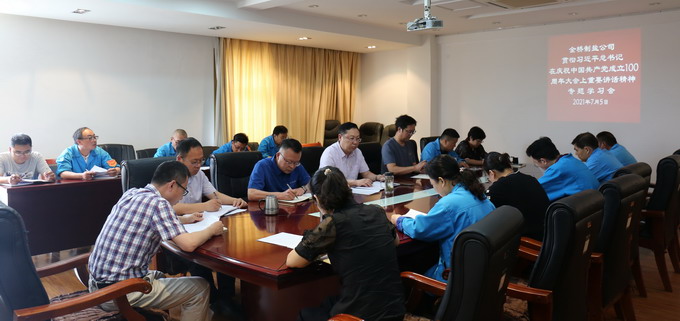 7月5日上午,我公司召開黨委理論中心組(擴大)學習會,專題學習習近平總書記在慶祝中國共產黨成立100周年大會上的重要講話精神。公司黨委書記、董事長、總經理朱桂玉主持學習會。公司領導班子成員及其他黨委理論學習中心組成員,各車間單位黨政負責人,機關各部室負責人參加學習會。