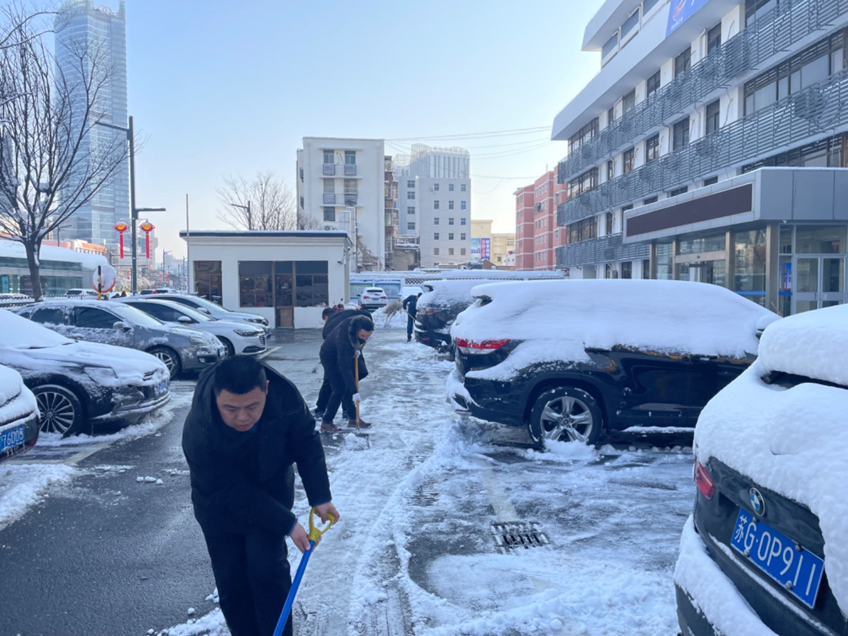 昨日,暴雪如期席卷我市,銀裝素裹間,積雪厚度也迅速增加。公司門前及院內(nèi)的厚重積雪,給日常辦公與員工的出行安全埋下了不小的隱患。面對這一情況,金融板塊的員工們迅速響應,以雪為令,迎寒而上,展開了一場掃雪除冰的集體行動。