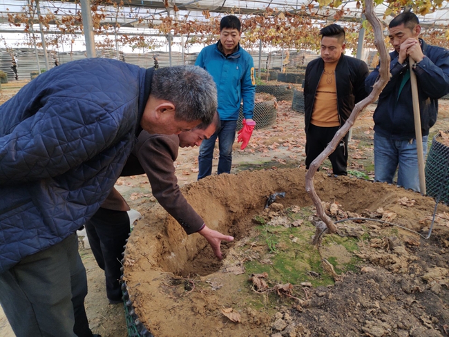 12月5日下午,種養(yǎng)中心邀請(qǐng)贛榆沙河葡萄種植專(zhuān)家劉大鵬,就有關(guān)限根葡萄種植技術(shù)的問(wèn)題到大棚現(xiàn)場(chǎng)指導(dǎo)。專(zhuān)家介紹了目前葡萄產(chǎn)業(yè)的發(fā)展現(xiàn)狀,并仔細(xì)查看種植條件,結(jié)合種養(yǎng)中心實(shí)際,對(duì)葡萄品種選擇、提高葡萄品質(zhì)、合理用藥、施肥、以及防治葡萄病蟲(chóng)害等方面進(jìn)行了講解。為今后葡萄的種植,起到了積極的促進(jìn)作用。(莫宗剛)