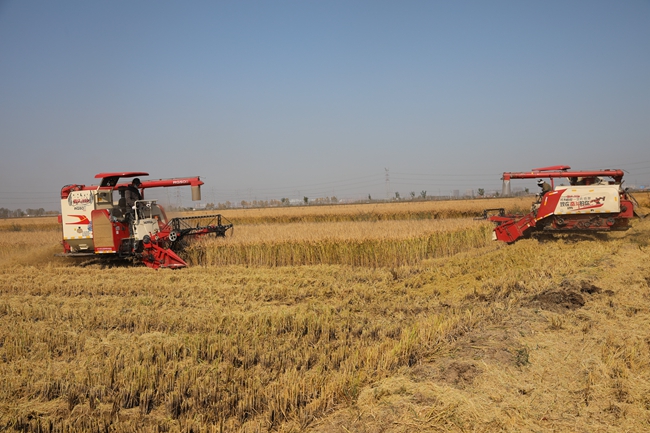 當前正值秋收大忙的關鍵時期,大新農場到處可見機械來回穿梭地收割、運糧、堆糧場景,空氣中彌漫著淡淡的稻香,一派繁忙的豐收景象。為確保秋糧顆粒歸倉,公司秋收工作組在田間和曬場間奔忙著,計量稱秤、農機管理、巡查值守、后勤保障,統籌安排搶抓晴好天氣抓緊水稻收割,全力打好秋收攻堅戰。農場從114日開始進入收割期,十幾臺收割機、拖拉機等農機全部投入生產,收割機每臺每天基本可以收割30畝左右,農場自營的5500余畝水稻預計于本周內全部收完。今年天氣多變性小,適合水稻生長,預計今年水稻的產量將高出去年。大新農場