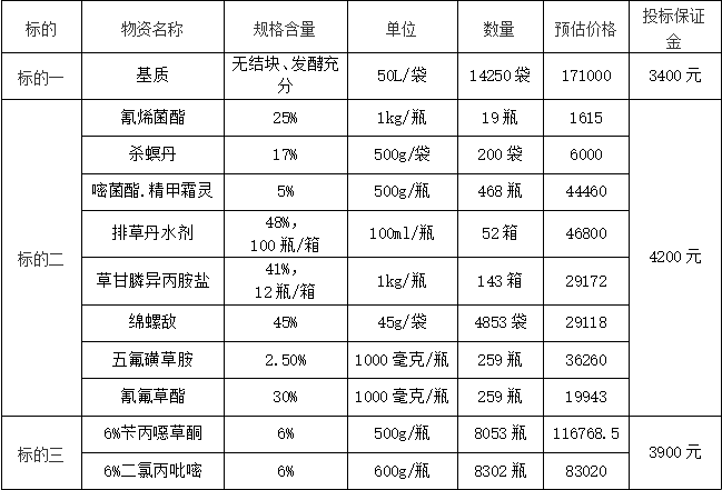 因青口投資公司2023年水稻種植需要,現擬對以下農資采購組織公開招標。現歡迎符合條件的供應商前來參加。