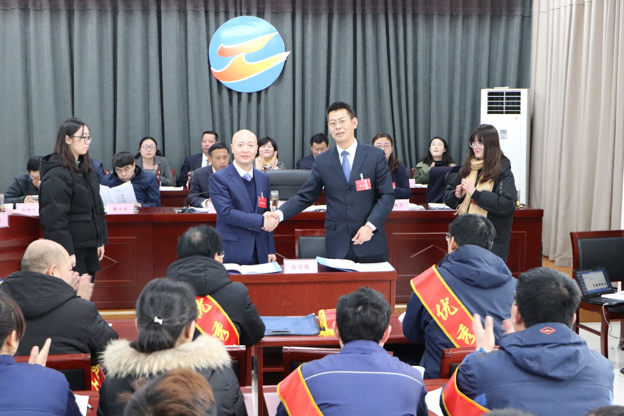 會議選舉產(chǎn)生了新一屆工會委員會、工會經(jīng)費(fèi)審查委員會、女職工委員會及職代會三個專門委員會。與會人員聽取并審議了總經(jīng)理《工作報告》、工會《工作報告》及《2018年預(yù)算指標(biāo)完成情況及2019年預(yù)算安排的意見》、《2019年勞動競賽實(shí)施意見》等有關(guān)方案。會上,簽訂了《2019年度集體合同》,并對2018年度3個先進(jìn)部室、3個示范班組及15名優(yōu)秀員工進(jìn)行了表彰。