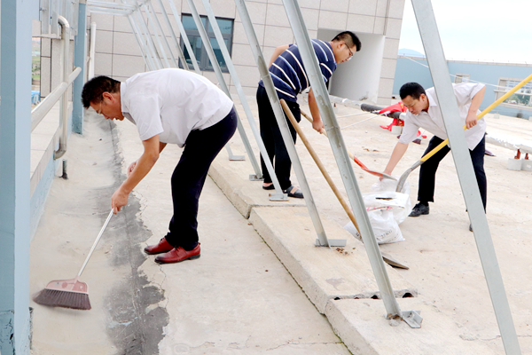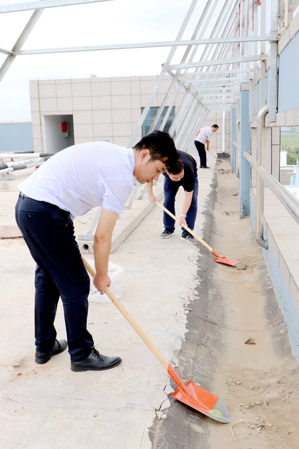 為凈化、美化公司辦公樓樓頂環境,消除積水隱患,826日上午,公司組織黨員、團員青年志愿者開展了專項清理整治行動。志愿者不畏艱辛,對樓頂進行了細致清掃,認真疏通排水口,力爭陰雨天氣不再出現積水現象。(神特宣)