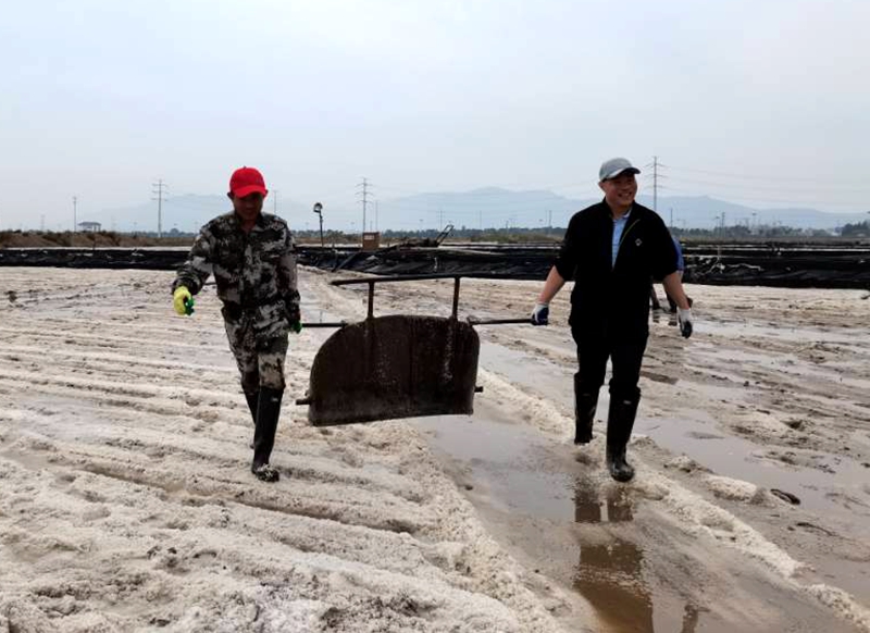厲兵秣馬,鏖戰(zhàn)秋扒鹽。“同志們,這將是我們臺北地區(qū)1300年鹽業(yè)史上最后,也是時間最緊急、任務(wù)最繁重的一次秋扒鹽了”正是因為使命在肩,我們更要勇往直前。公司全體黨員干部爭分奪秒扒鹽、竭盡全力制鹵,奮戰(zhàn)100天,全力沖刺“開新局、奪首勝”目標(biāo)任務(wù)。連云港堿廠關(guān)停在即,鹽鈣聯(lián)產(chǎn)項目終結(jié),原鹽搶收進(jìn)入到了大決戰(zhàn)時刻。為此,公司上下,從黨委班子到普通辦事員,從直屬單位到公司機(jī)關(guān),全部動員起來,9月28日召開了戰(zhàn)前動員大會并進(jìn)行秋扒崗前培訓(xùn)。10月2日,天時地利人和,夜里9時10分,隨著機(jī)器一聲轟鳴,扒鹽機(jī)組輸鹽大架銀瀑飛濺,大八組、西灘雙向聯(lián)動,人工扒鹽、機(jī)械扒鹽齊頭并進(jìn)。公司領(lǐng)導(dǎo)與廣大職工想在一起、干在一起,上下齊心、爭分奪秒,擼起袖子、甩開膀子,在鹽池間盡情地?fù)]灑著汗水,確保勞動成果顆粒歸倉,誓奪原鹽收官戰(zhàn)全勝。截止6日晚,公司 排放鈣液6000方,扒鹽3000余噸。