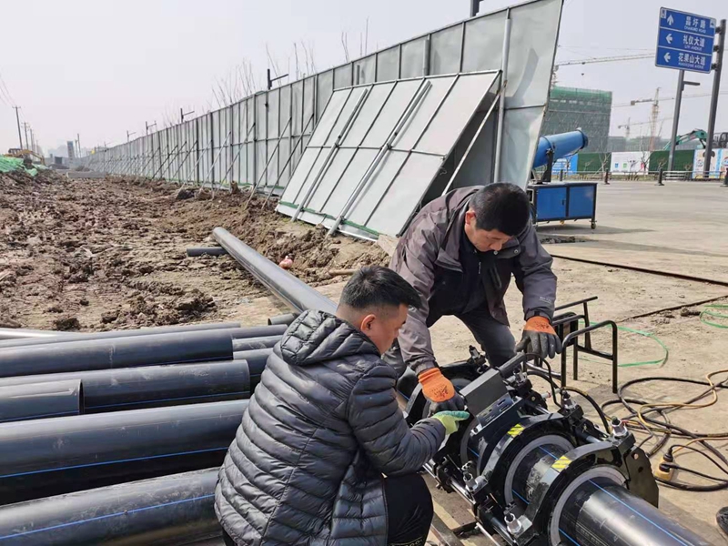 今天恰逢二月二龍抬頭,雖然是星期天,但卻絲毫不影響翔立人干事創業的龍馬精神。為了搶工期,分成三個攻堅組,兩臺熱熔焊機分組同步進行,一個運輸組馬不停蹄保證管道的運送供給。全體參與工程人員承諾“五天拿下全部工程量,再塑翔立鐵軍新形象”高亢的口號此起彼伏,嘹亮的誓言回響在施工現場上空,堅毅的精神面貌再度彰顯出“拉得出、沖得上、打的贏” 的鐵軍風范。