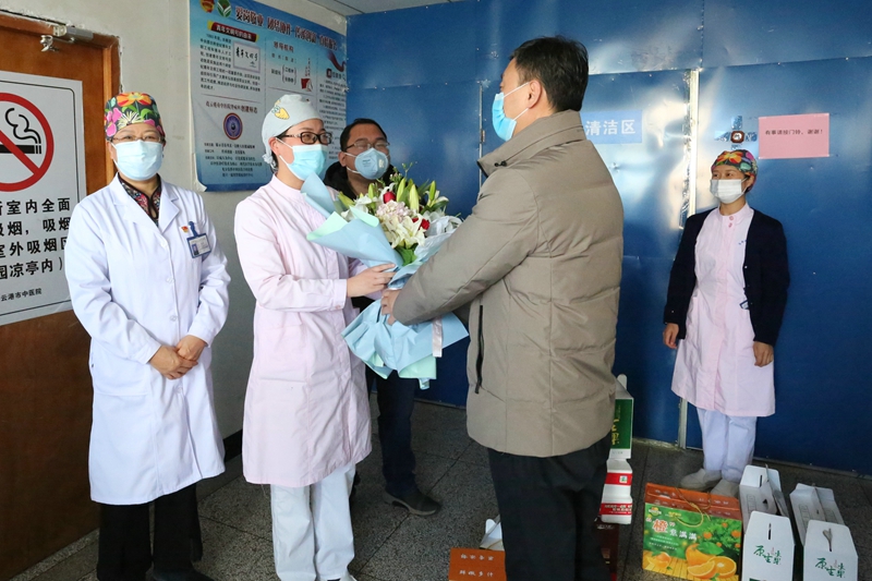 為慰問公司職工家庭中的戰疫天使”,并表達對戰“疫”一線醫護工作者們的敬意,227午,黨委副書記、工會主席吳衛平代表投資公司赴市中醫院慰問一線醫護工作者。市中醫院黨委書記李建軍、院長李秀連、黨委副書記楊爽等親自接待了公司慰問人員一行。