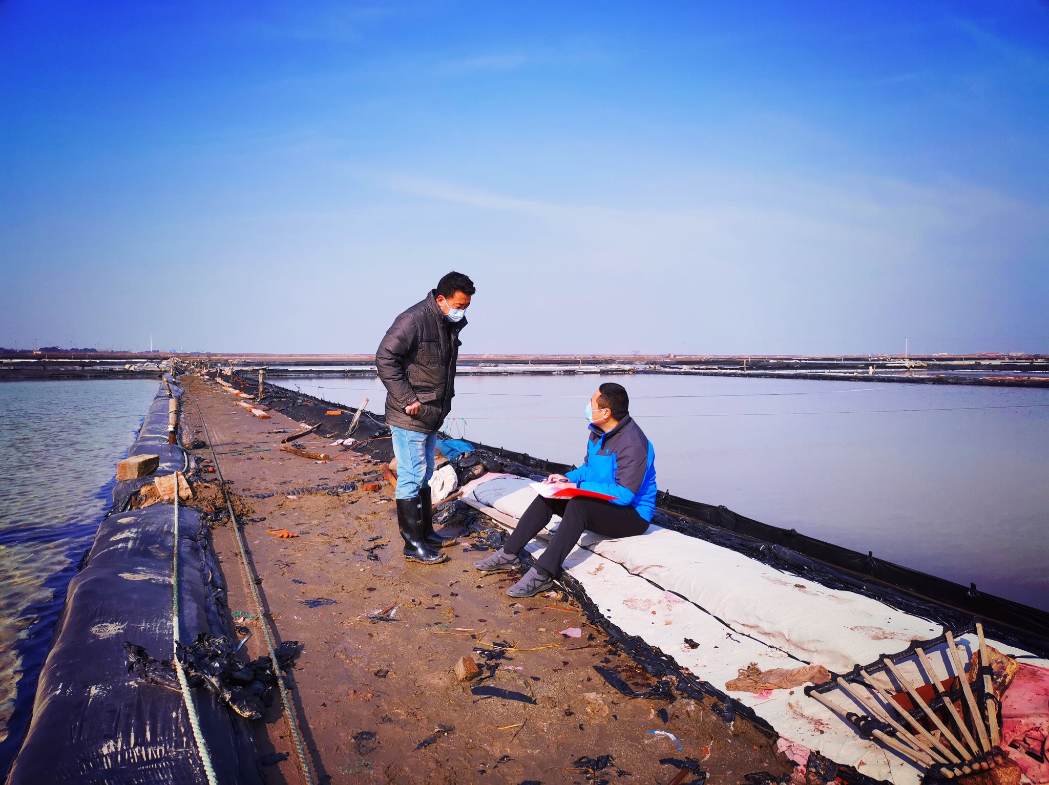 2月10日,海州灣公司對鹽場3個班組18個生產單元開展摸排,問詢值班卡點人員是否有外來人員進入,查看值班記錄,要求落實值班值守工作制度;問詢班組長是否掌握班組職工健康狀態,查看防疫宣傳和消殺記錄,要求人員健康和生產工作動態實時跟蹤;問詢領灘手身體狀況是否良好,查看是否隔離作業,要求配備口罩不扎堆聊天。