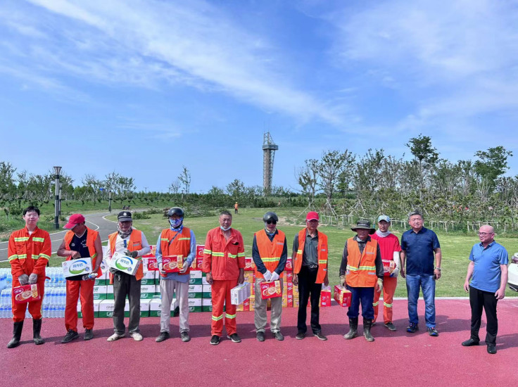 在現場,為他們送去礦泉水、八寶粥、冰紅茶、牛奶等防暑降溫物品和生活用品。莊董事長與員工們親切交談,關心詢問員工作和生活情況,并叮囑要合理調整工作時間,妥善做好員工高溫防暑降溫工作。接到領導遞到手上的慰問品,聽著領導的問候和囑咐,員工們心懷感激,競相表示要克服酷暑高溫,堅守崗位,盡職盡責,以飽滿的工作熱情為企業(yè)發(fā)展貢獻力量。(孫祥艷)