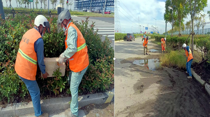 道路保潔“鏗鏘有力”。為高效完成此次大保障,該分公司提前行動,強化隱藏地點,衛生拐角,橋涵河邊等各種垃深度清理,裝運。9個班組人員在班長帶動下,步調一致,明確分工,無懼路面粉塵人工清掃道路岔口,拐角處泥土,雜草30處,轉運各類垃圾達200袋,徒手清掃人行輔道雜草2000余米長,道路沿線呈現熱火朝天繁忙景象,有力保障活動經過路面整體環境衛生整潔。
